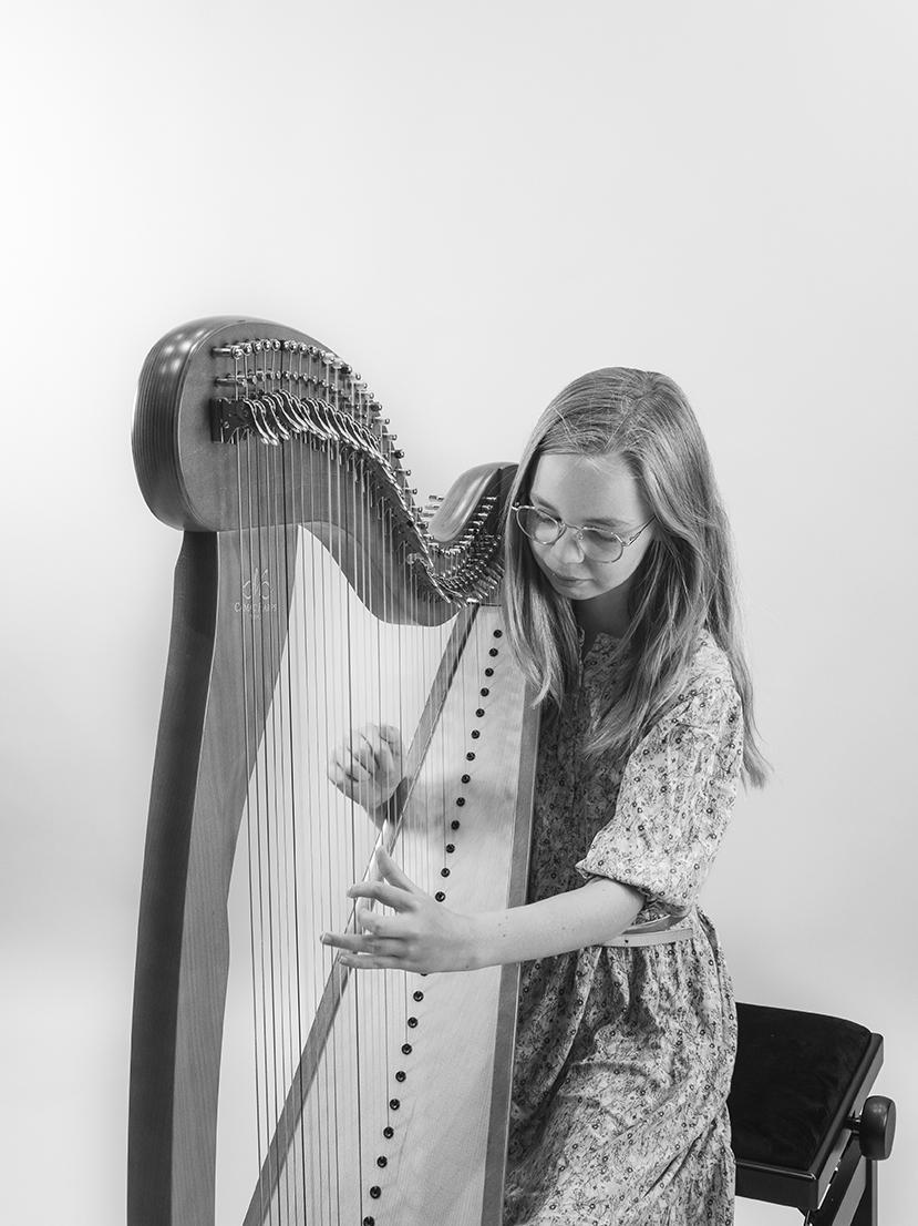 Myrthe is dertien jaar en heeft al vijf jaar les bij Sabine. Na de cursus Kies Je Instrument koos ze al snel voor de harp. ‘Ik vond het meteen een heel mooi instrument’ vertelt Myrthe.