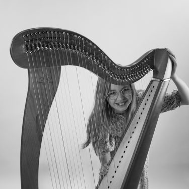Myrthe is dertien jaar en heeft al vijf jaar les bij Sabine. Na de cursus Kies Je Instrument koos ze al snel voor de harp. ‘Ik vond het meteen een heel mooi instrument’ vertelt Myrthe.