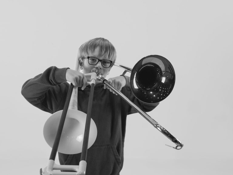 Maurits is tien en zit op basisschool Het Kompas. Daar kreeg hij in groep 5 en 6 les van muziekmeesters Floris en Youri. Zo ontdekte hij de trombone: “Het instrument ziet er zo grappig uit en je kunt er allemaal leuke geluiden op maken en lekker schuiven!” Dat leek hem dus wel wat: trombone spelen. Zo kwam hij op les bij trombonedocent Karin. “Karin is een fijne docent,” vindt Maurits, “ze gaat niet te snel en als ik vragen heb, weet zij meestal het antwoord wel.”
